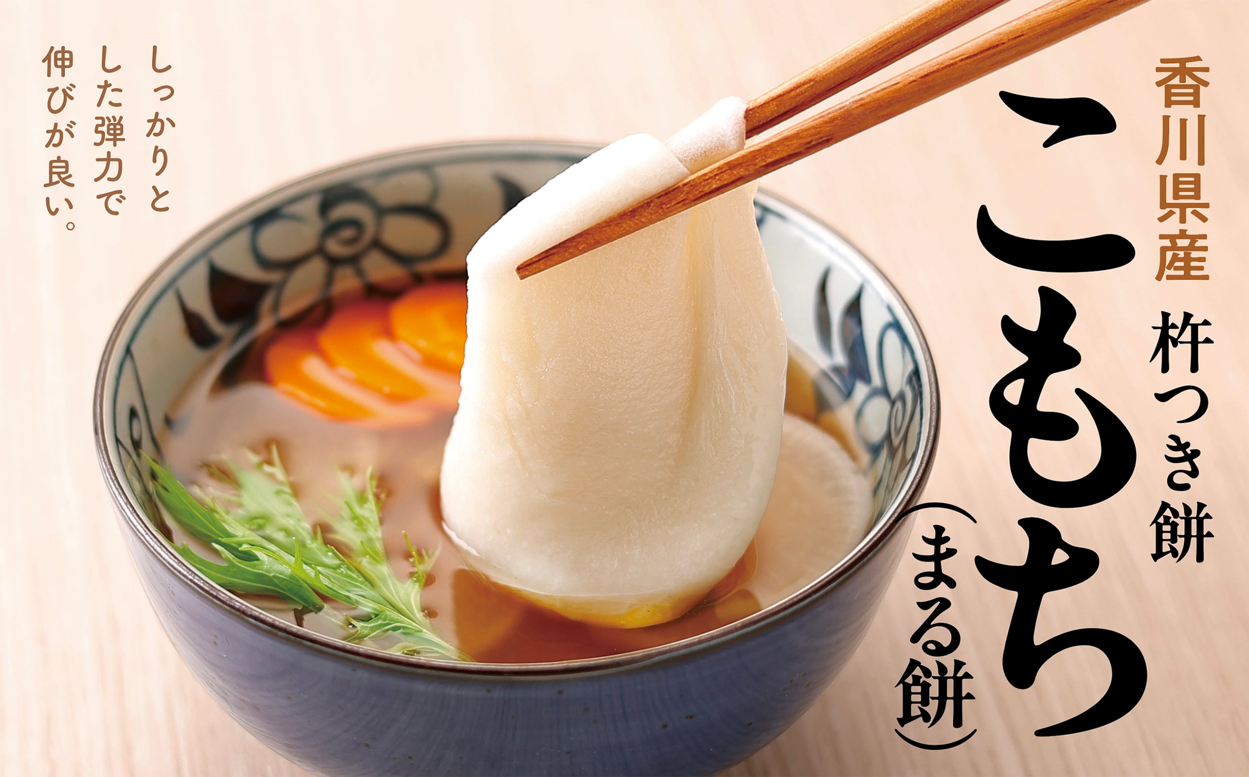 香川県産もち米を100%使用し、搗き立てをそのまま急速冷凍した無添加のお餅です。
